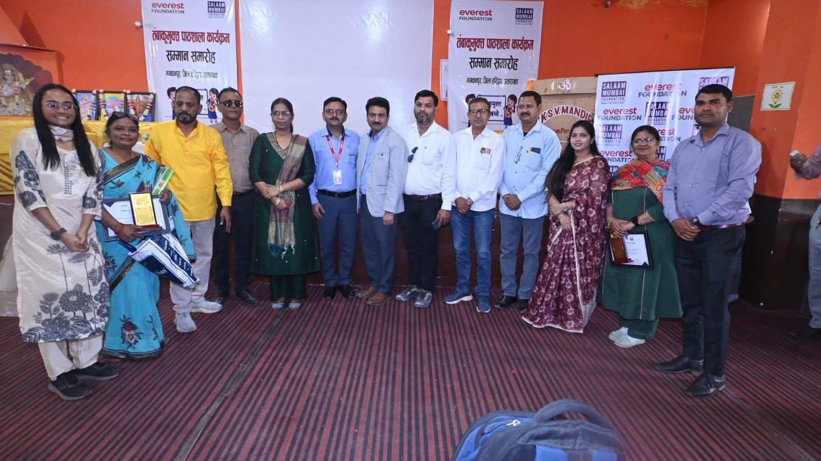 इस अवसर पर ब्लॉक एजुकेशन ऑफीसर अभिषेक शुक्ला और सलाम मुंबई-फाउंडेशन के अजय चौहान,अहेली गुप्ता,रविन्द्र कुमार और एवरेस्ट इंडस्ट्री के प्लांट हेड पवन कुमार सर और आशुतोष चौहान सर मंच पर उपस्थित रहे।