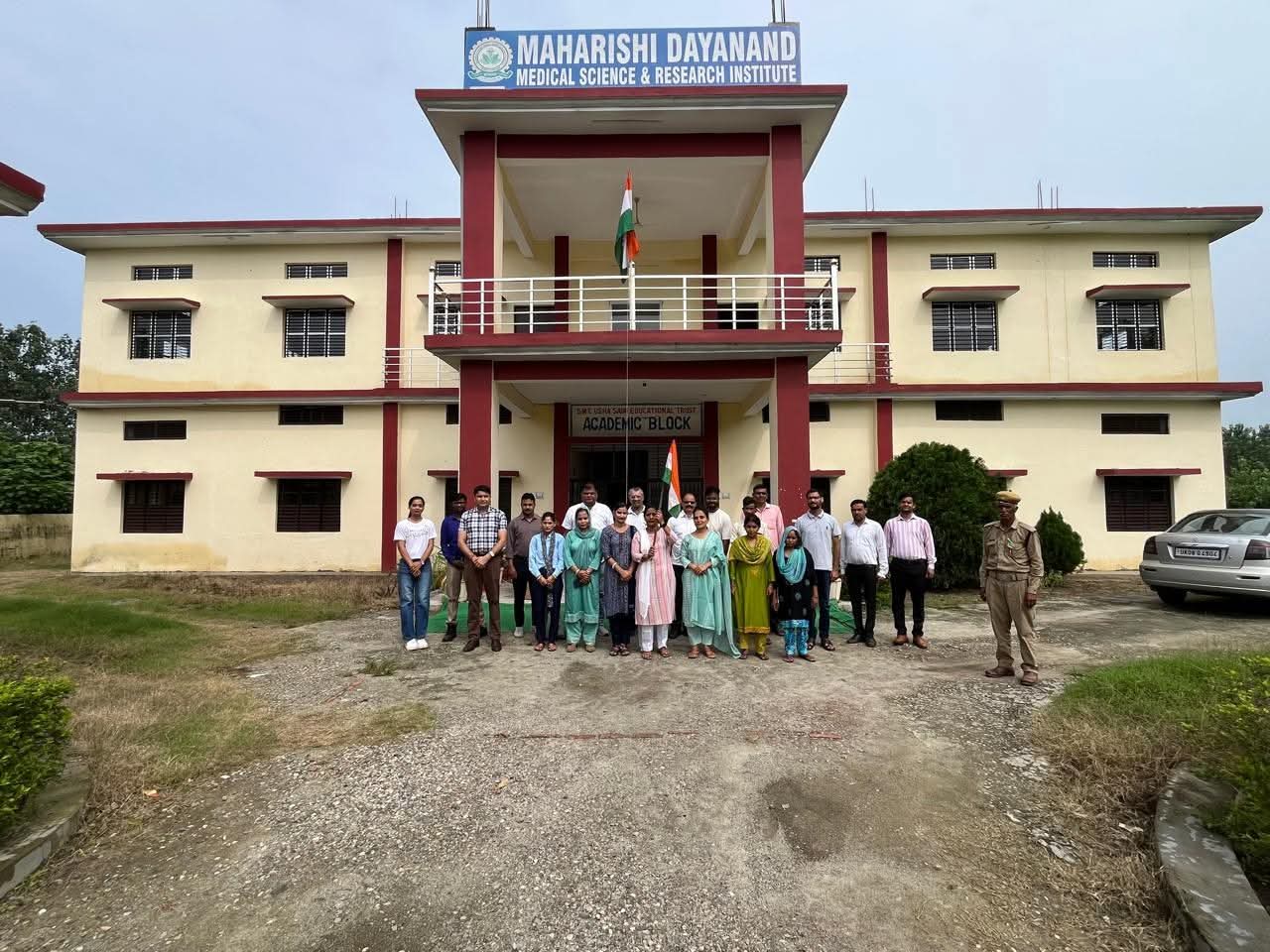 रुड़की / धनौरी । आज महर्षि दयानंद मेडिकल साइंस एवं रिसर्च इंस्टीट्यूट धनौरी हरिद्वार में भारतवर्ष का महापर्व 79वां स्वतंत्रता दिवस 15 अगस्त 2025 बड़े हर्षोल्लास के साथ मनाया गया स्वतंत्रता दिवस के अवसर संस्थान अध्यक्षा रविता सैनी उपाध्यक्ष राकेश कुमार सैनी द्वारा संयुक्त रूप से ध्वजारोहण किया गया। देश के शहीदों को देश की महान विभूतियों को नमन किया गया, याद किया गया।
