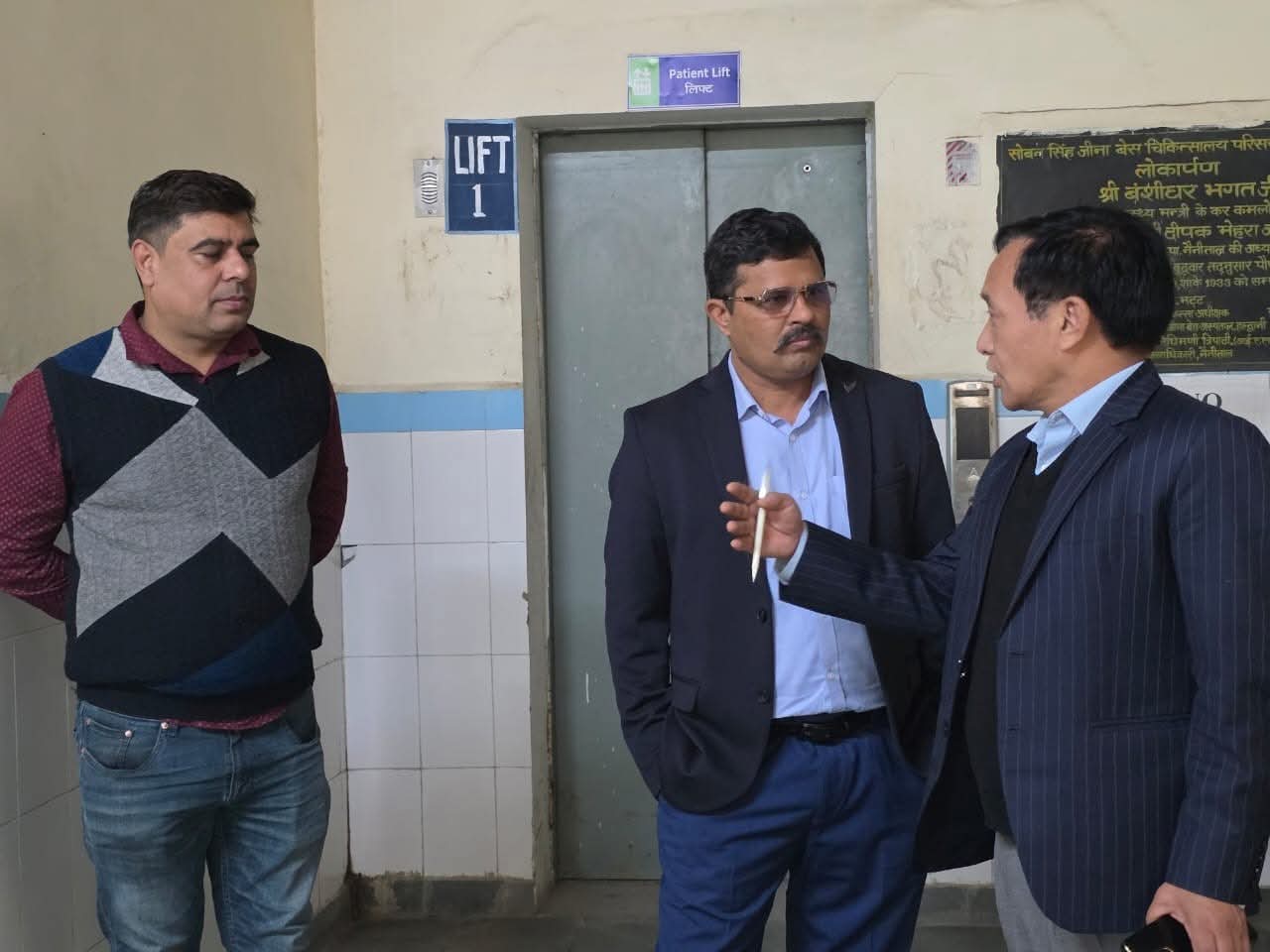 अपर जिलाधिकारी (प्रशासन) विवेक राय ने बेस अस्पताल की दोनों खराब लिफ्ट की मरम्मत हेतु मौके पर पंहुच कर किया स्थलीय निरीक्षण तुरंत ठीक करने हेतु अस्पताल प्रबंधन द्वारा की जा रही कार्यवाही की जानकारी ली