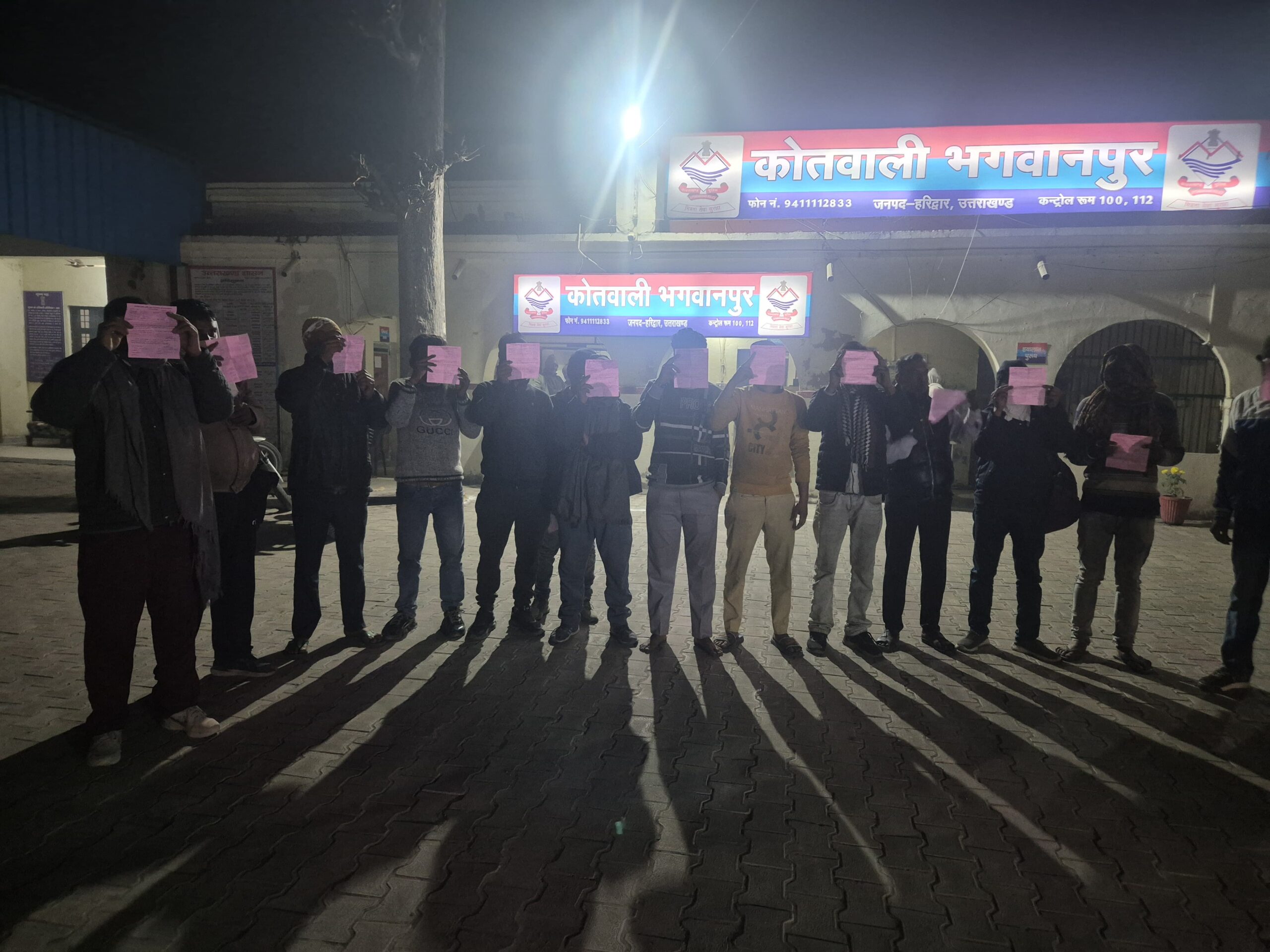 भगवानपुर । वरिष्ठ पुलिस अधीक्षक जनपद हरिद्वार के दिशा-निर्देश के क्रम में राज्यव्यापी चेकिंग अभियान थाना भगवानपुर पुलिस चलाया गया दौराने चैकिंग 19 व्यक्तियो द्वारा दौराने चैकिंग कस्बा क्षेत्र के भीड़ भाड़ वाले इलाके में चैकिंग अभियान चलाया गया तथा संदिग्ध व्यक्तियों व वाहनों को चेक किया गया साथ ही साथ सड़क किनारे बने ढाबों की चैकिंग की गई जिसमें ढाबों में बैठकर नियमों का उल्लघंन कर जाम छलकाते पाए गए व्यक्तियों के विरु्द्द अन्तर्गत धारा 81 पुलिस अधिनियम में कार्यवाही कर 19 व्यक्तियों का चालान किया गया।