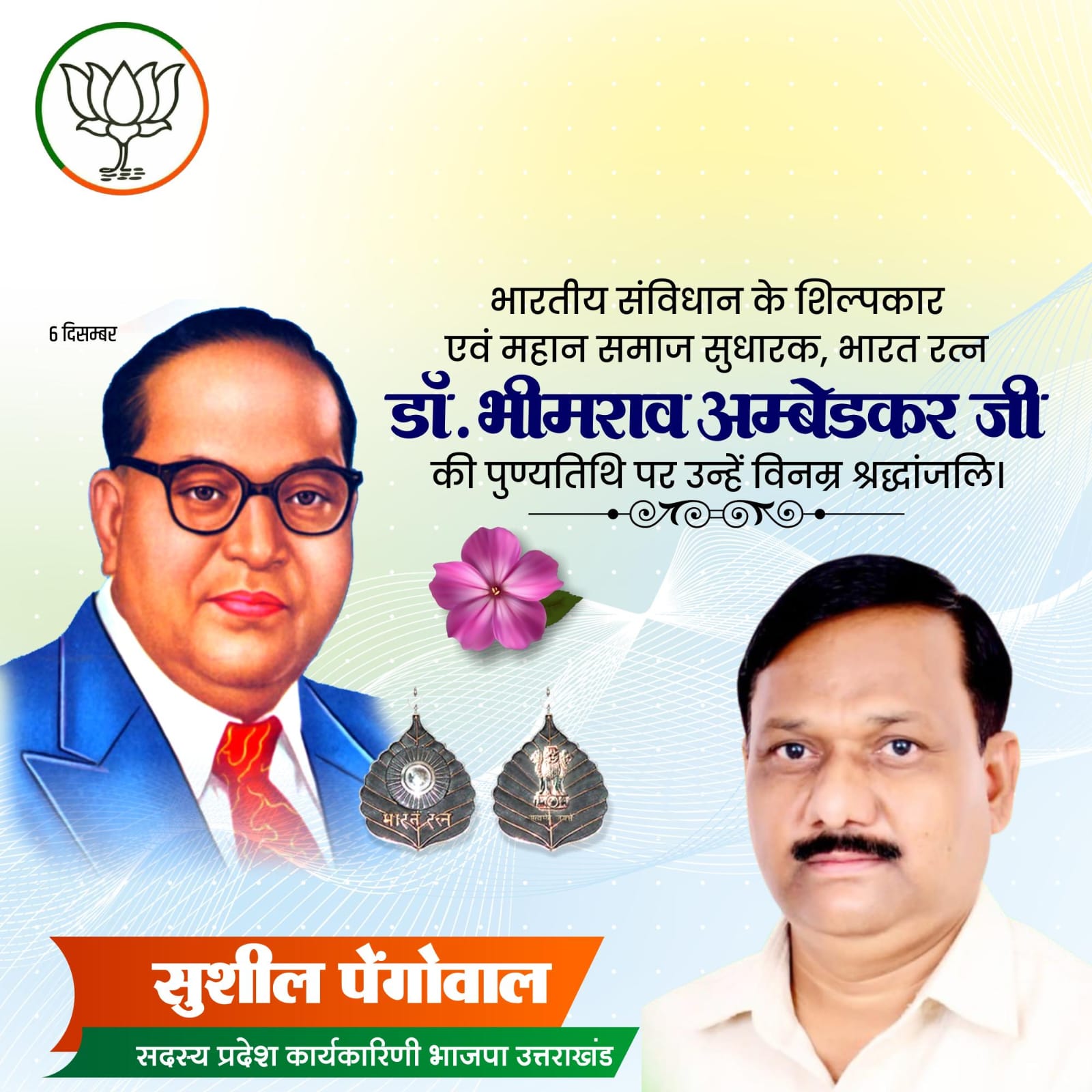संविधान निर्माता भारत रत्न डॉ. भीमराव अंबेडकर की पुण्यतिथि पर उनका भावपूर्ण करते हुए भाजपा नेता सुशील पेंगोवाल ने दी श्रद्धांजली, कहा-बाबा साहेब के द्वारा दिए गए संविधान के अनुरूप प्रधानमंत्री मोदी के नेतृत्व में सरकार सबका साथ, सबका विकास और सबका विश्वास के मंत्र पर कार्य कर रही