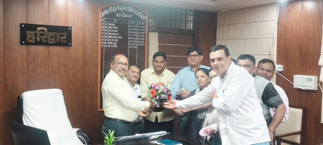 राजकीय फार्मसी अधिकारी संघ जिला अध्यक्ष का पदभार ग्रहण करने पर ब्रिजेश कुमार को मुख्य चिकित्सा अधिकारी हरिद्वार ने दी बधाई