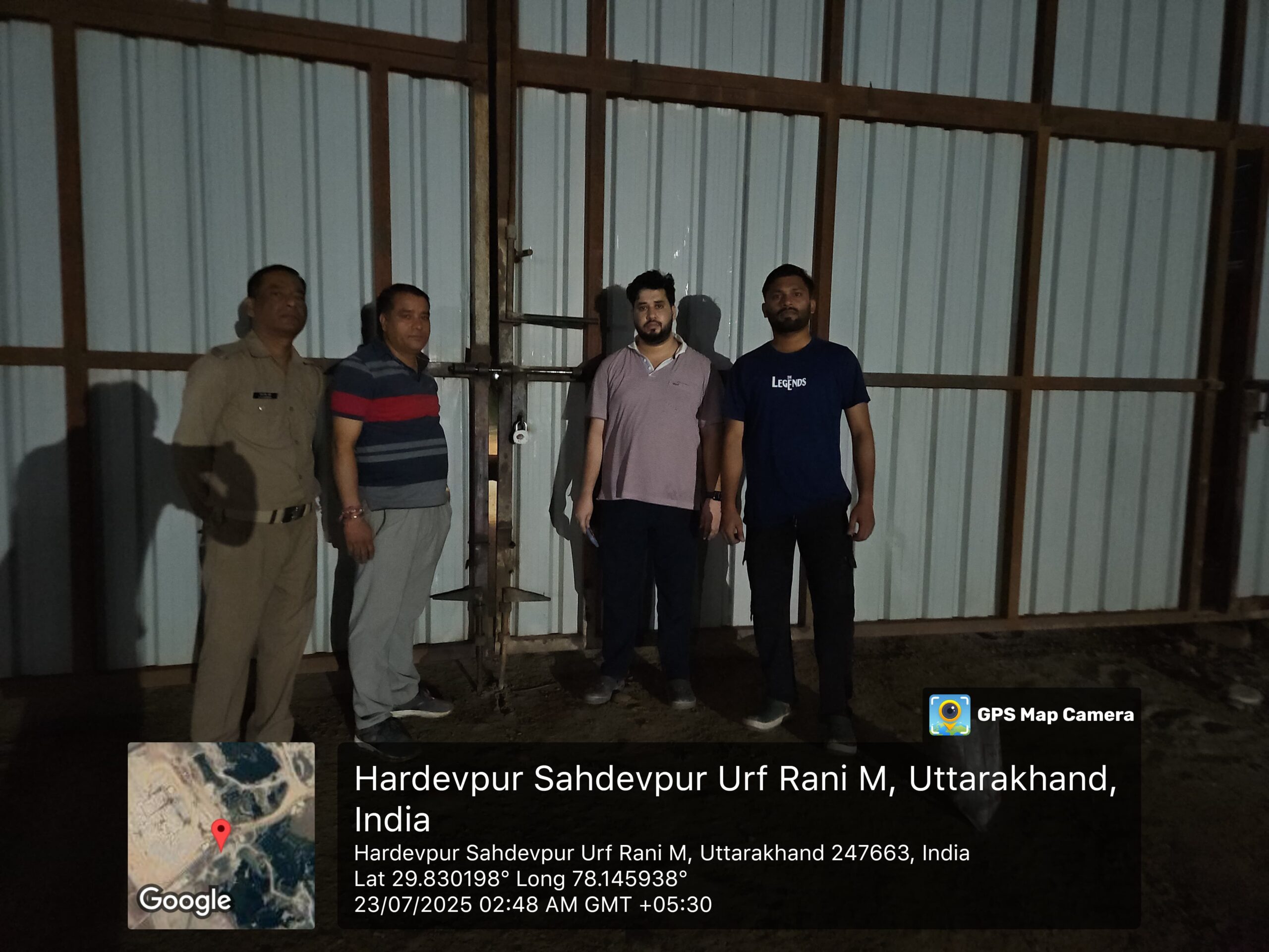 जिलाधिकारी के निर्देशों के क्रम उनके द्वारा टीम गठित की गई तथा दिनांक 23 जुलाई 2025 को रात्रि 02ः15 बजे रात्रि को जनपद हरिद्वार तहसील के ग्राम सहदेवपुर हरदेवपुर उर्फ रानीमाजरा में अवैध खनन में विभागीय दल के द्वारा मै० श्री शिव शक्ति स्टोन केशर का औचक निरीक्षण किया गया। औचक निरीक्षण के समय पाया गया कि मै० श्री शिव शक्ति स्टोन क्रेशर को दिनांक 10 जुलाई 2025 को सीज किया गया है।