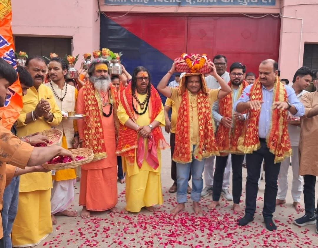 रोशनाबाद । चैत्र नवरात्र के पहले दिन रोशनाबाद के जिला जेल परिसर में आध्यात्मिक माहौल नजर आया। भव्य कलश यात्रा के साथ श्रीमद्भागवत कथा का विधिवत शुभारंभ किया गया।
