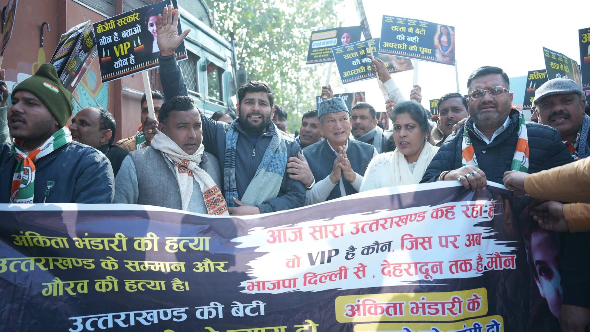 मंगलवार को कांग्रेस कार्यालय से मुख्य बाजार से होकर ललित चौक पर पदयात्रा संपन्न हुई। इस दौरान पूर्व मुख्यमंत्री हरीश रावत ने कहा कि भाजपा सरकार में बेटियां खुद को असुरक्षित महसूस कर रही हैं, जो समाज के लिए शर्मनाक है। उन्होंने कहा कि जब तक अंकिता को न्याय नहीं मिल जाता, कांग्रेस चुप नहीं बैठेगी और सड़क से सदन तक संघर्ष जारी रहेगा।