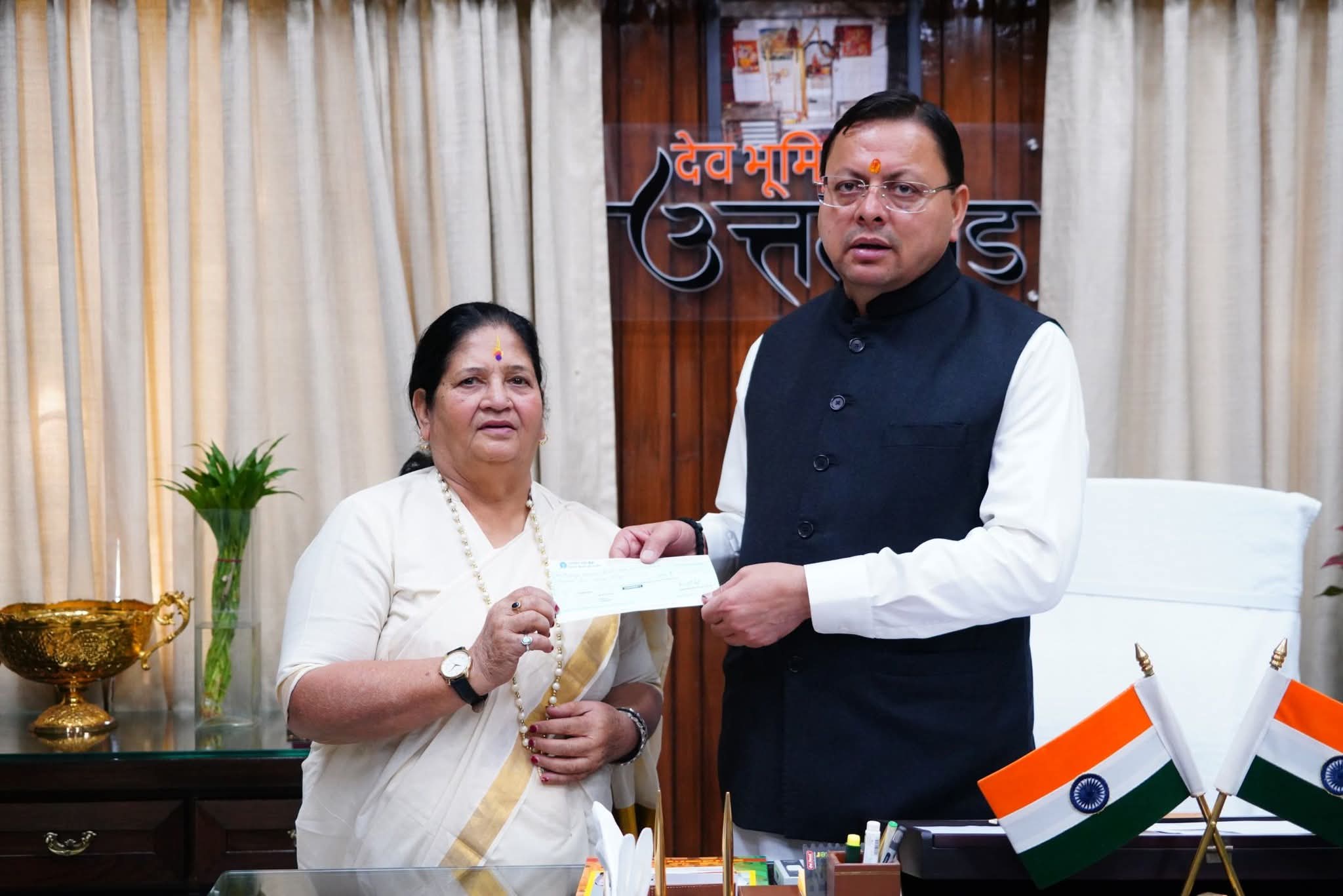मुख्यमंत्री राहत कोष के लिए पर्वतारोही बछेंद्री पाल ने प्रदान किया 10 लाख का चेक