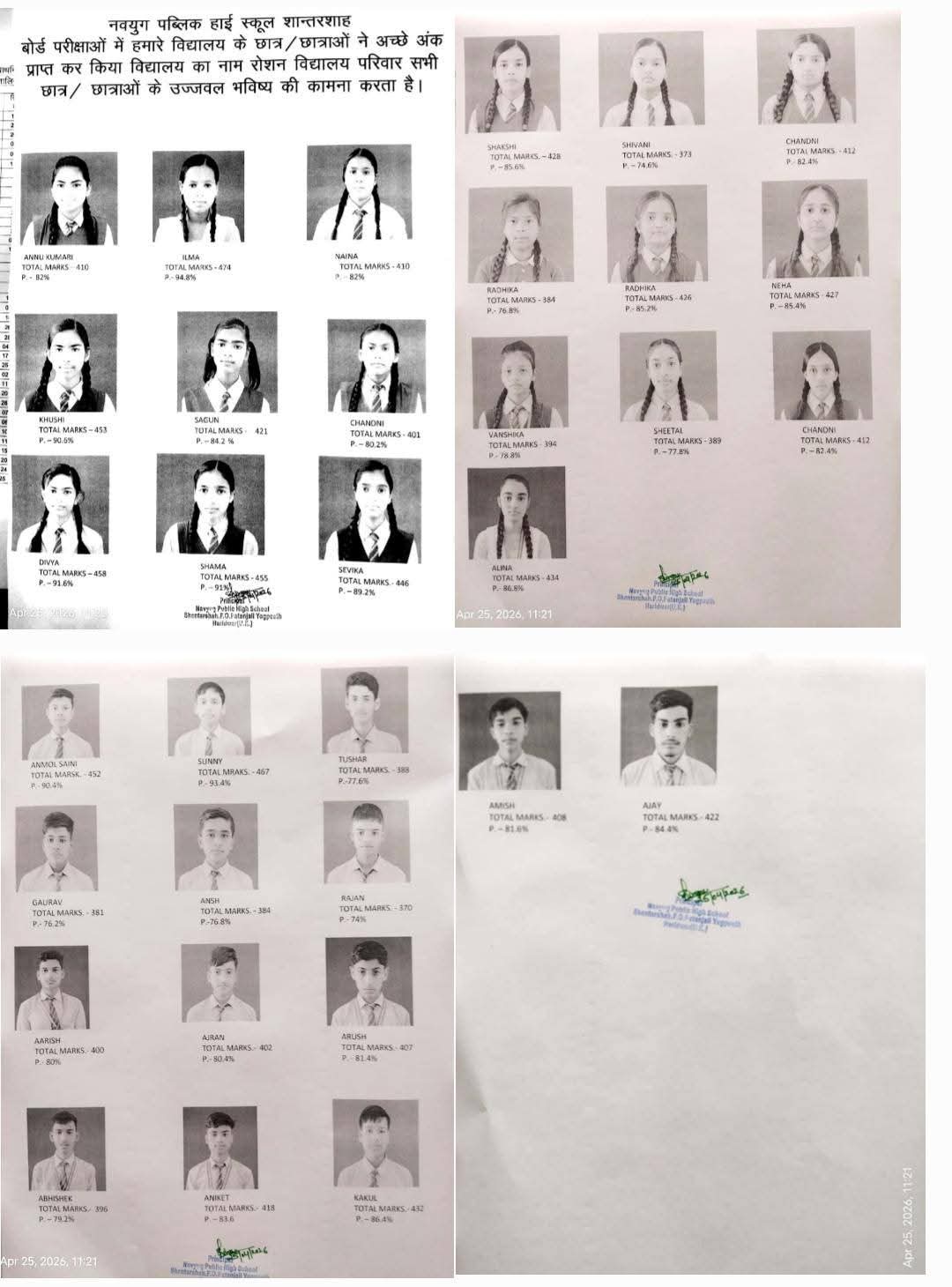 नवयुग पब्लिक हाई स्कूल शान्तरशाह हाईस्कूल का रिजल्ट शत-प्रतिशत, छात्रा इलिमा और छात्र सन्नी ने हरिद्वार जिले की मैरिट में स्थान प्राप्त किया, प्रिसिंपल शिवानी सैनी और उप प्रबंधक राहुल सैनी ने दी बधाई, की उज्जवल भविष्य की कामना