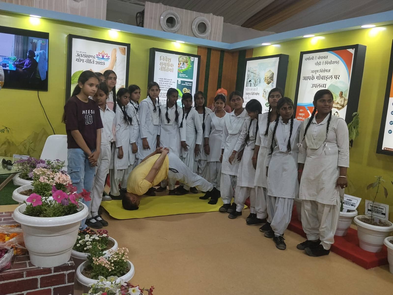 · स्टॉल पर लाइव योग प्रदर्शन आयोजित किया गया, जिसकी आम जनता द्वारा खूब प्रशंसा की गई। लोग स्वयं योग आसनों में भाग लेकर स्वास्थ्य लाभ अनुभव कर रहे थे। इसके अतिरिक्त, औषधीय पादपों का प्रदर्शन किया गया, जिसमें विभिन्न औषधीय पौधों की पहचान, उनके औषधीय गुण एवं उपयोग की जानकारी दी गई।