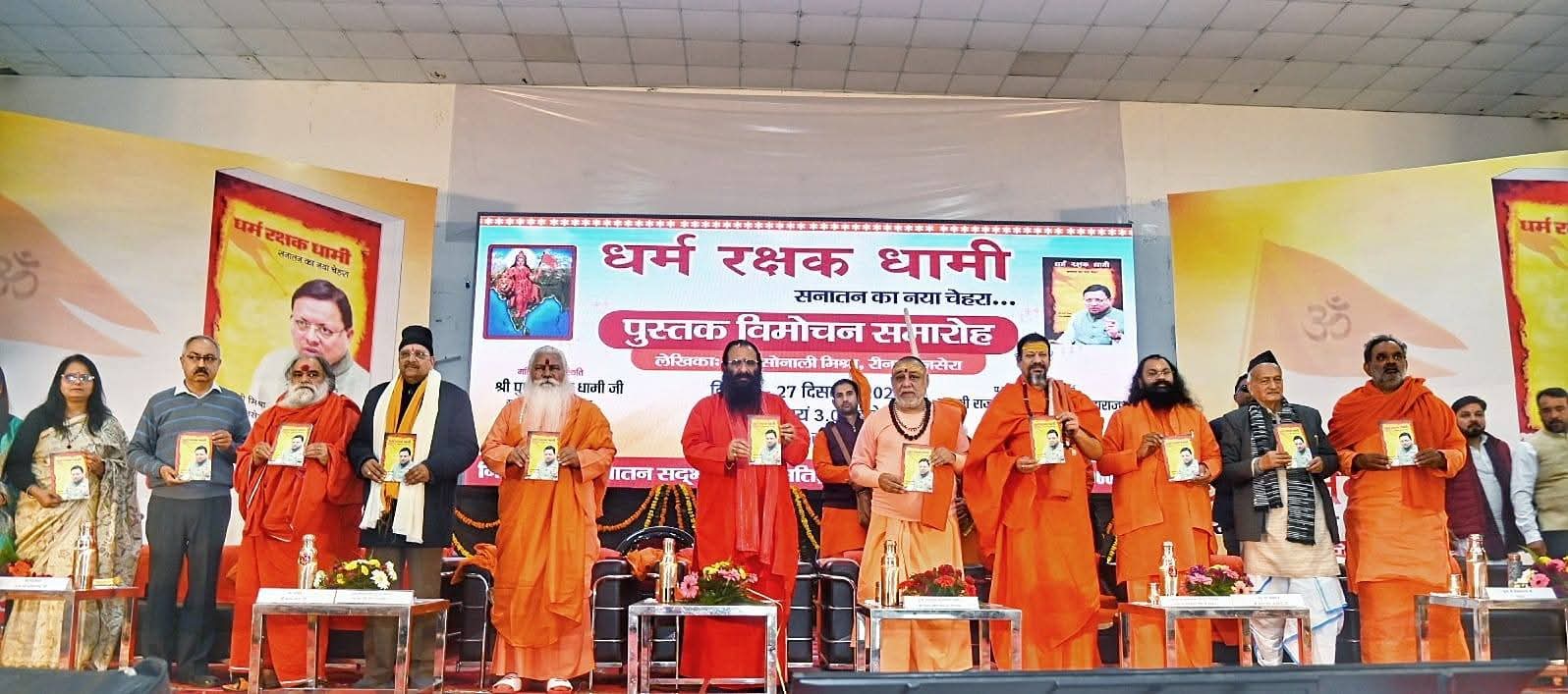 धर्म की रक्षा होगी तभी होगा राष्ट्र सुरक्षित : जगतगुरु शंकराचार्य स्वामी राजराजेश्वराश्रम, धामी के एक्शन से जिहादी मानसिकता परेशान: आचार्य महामंडलेश्वर स्वामी कैलाशानन्द, धर्म रक्षा का सूत्र है धर्म रक्षक धामी : श्रीमहंत रविन्द्र पुरी, युवाओं के प्रेरणाश्रोत है धामी : भगतदा, धर्म रक्षक धामी पुस्तक का सन्तो ने किया विमोचन