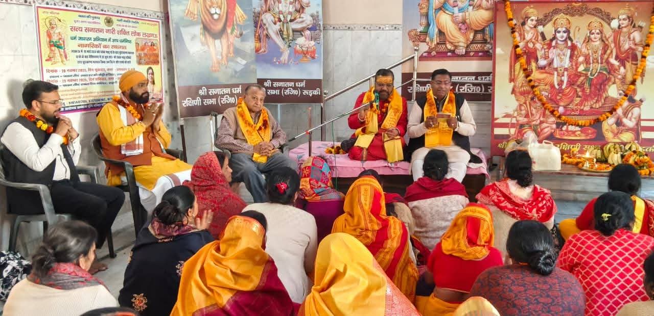 रुड़की । सत्य सनातन नारी शक्ति,लखनऊ द्वारा रुड़की के प्रसिद्ध सिद्धेश्वर महादेव मंदिर में सुंदरकांड का पाठ राष्ट्र कल्याण के लिए एवं महायज्ञ व हनुमान चालीसा का पाठ का आयोजन किया गया,जिसमें सैकड़ों नारी शक्ति ने भाग लिया।सभी ने हिंदू राष्ट्र व सनातन का संकल्प लिया।मुख्य अतिथि गुरुदेव आचार्य रमेश महाराज जी महाराज ने कहा कि यह अभियान बहुत ही अच्छा है।युवा शक्ति,नारी शक्ति मिलकर राष्ट्र के लिए सनातन को जागृत कर रही हैं,जो बहुत ही श्रेष्ठ कार्य है।सुंदरकांड महाअभियान बहुत ही श्रेष्ठ कार्य है,जिससे भगवान श्री राम की शक्ति जागृत होगी और राम पुनः प्रकट हो राष्ट्र का कल्याण करेंगे।उन्होंने सभी समिति की सदस्यों को शुभकामनाएं दी और कहा कि प्रभु राम की कृपा से प्रत्येक घर प्रत्येक परिवार में सुंदर कांड का पाठ होने से युवा शक्ति में संस्कार उत्पन्न होंगे।कहां कि सनातन संस्कृति से ही विश्व का कल्याण होगा,जहां सुख शांति समृद्धि होगी।श्री हनुमान जी ने हमेशा श्री राम की सेवा की है,तो हनुमान जी की कृपा से ही प्रभु राम हमें प्राप्त होंगे।प्रत्येक जीव आत्मा को प्रभु नाम की सेवा करनी चाहिए।प्रभु हनुमान जी का नाम लेकर आगे बढ़ना चाहिए।सत्य सनातन नारी शक्ति अभियान की संयोजिका सपना गोयल ने कहा कि आज बीस हजार मातृशक्ति हमारे साथ जुड़ चुकी हैं।उत्तर प्रदेश के बीस जिलों में निरंतर सुंदरकांड का पाठ हमारे संगठन द्वारा किया जा रहा है।अयोध्या धाम में भी सुंदरकांड का पाठ किया जाता है।उन्होंने कहा कि वह चाहती हैं कि प्रत्येक परिवार में सुंदरकांड का पाठ हो।प्रत्येक युवा सुंदरकांड का पाठ करें।हर शनिवार व मंगलवार को प्रत्येक घर तथा प्रत्येक मंदिर में सुंदरकांड का पाठ होना चाहिए।सनातन धर्म रक्षिणीसभा के महामंत्री सौरभ भूषण शर्मा ने कहा कि उनका संगठन निरंतर हिंदुत्व को एक कर रहा है।सभी हिंदुओं को एक होकर आगे बढ़ना चाहिए।हमारी एक ही जाति है सनातन और हमें भगवान श्री हनुमान जी के प्रभु श्री राम के बताएं मार्ग पर चलना चाहिए,जिससे राष्ट्र का कल्याण हो।उन्होंने सभी युवा शक्ति का आह्वान किया कि वह निरंतर प्रभु राम के बताएं मार्ग पर चले।कार्यक्रम में बीना नौटियाल,रेखा रावत,राधा भटनागर,चित्रा गोयल,राधा भंडारी,सुलक्षणा सेमवाल,सुधांशु वत्स,आचार्य रोहित शास्त्री,प्रकाश नौटियाल,रानी सिंह,पूजा वर्मा,निकिता शर्मा,अदिति,रीना अग्रवाल आदि प्रमुख रूप से मौजूद रहे।समापन सभी को प्रसाद वितरित कर किया गया।