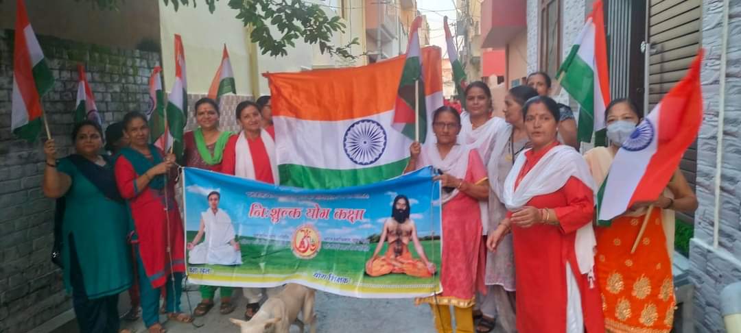 महिला पतंजलि योग समिति की समस्त बहिनों ने कृष्णा नगर से रामनगर तक तिरंगा पदयात्रा निकाली