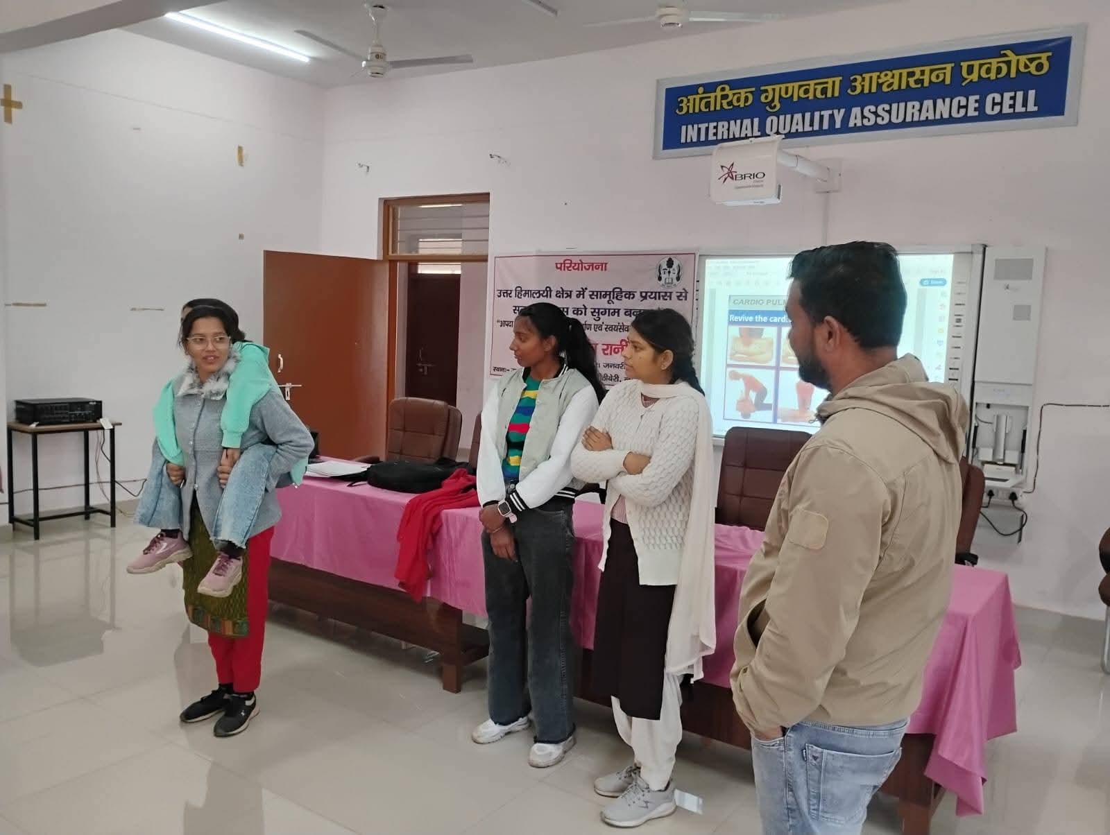 तृतीय सत्र में मुख्य प्रशिक्षक मनोज कंडियाल के द्वारा सभी छात्र छात्राओं को आपदा प्रबंधन के विषय में जानकारी प्रदान करते हुए सभी छात्र छात्राओं को आपदा प्रबंधन के प्राथमिक उपचार के बारे में जानकारी प्रदान की।