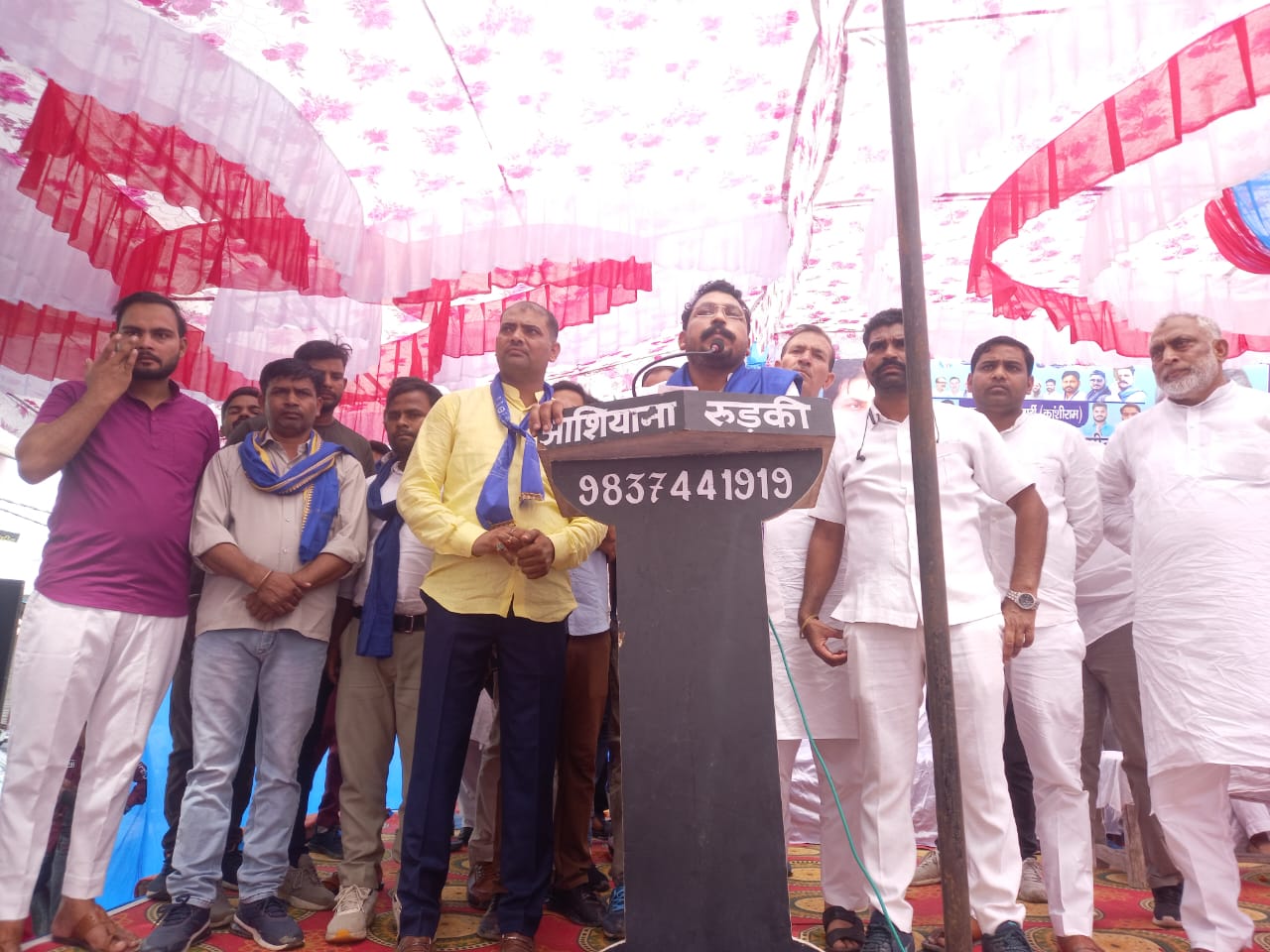भगवानपुर । आजाद समाज पार्टी प्रदेश अध्यक्ष महक सिंह की अध्यक्षता में चोली शाहबुद्दीनपुर में एक चुनावी सभा का आयोजन किया गया। कार्यक्रम का शुभारंभ आजाद समाज पार्टी के प्रमुख चंद्रशेखर आाजद ने जिला पंचायत सीट चोली शहाबुद्दीनपुर से आजाद समाज पार्टी प्रत्याशी खालिद पुंडीर के पक्ष में मतदान की अपील की। उन्होंने कहा कि लोगों को अपने मतदान के अधिकार को पहचानना पड़ेगा। कार्यक्रम में अमरीश कपिल, खालिद पुंडीर, पप्पू, सुमित कटारिया, इमरान,नौशाद आदि उपस्थित रहे।