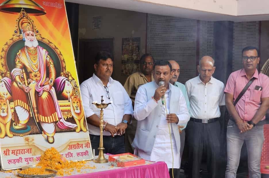 रूड़की । युवा अग्रवाल सभा (रजि०) के तत्वावधान में अग्रवाल भवन साकेत में अग्रवाल समाज वंशज महाराज अग्रसेन जन्मोत्सव समारोह का भव्य हवन-यज्ञ कर मनाया गया।सभा के अध्यक्ष पंकज सिंघल,महामंत्री नवनीत गर्ग व कोषाध्यक्ष पारस गोयल आदि पदाधिकारीगणों व एकत्र अग्रोहा समाज के नागरिकों ने हवन-यज्ञ कर राष्ट्र की एकता व अखंडता व सुख-समृद्धि की कामना की।आचार्य राजकुमार कौशिक द्वारा मंत्रोच्चारण के साथ आहुति दिलाई गई,साथ ही भगवान अग्रसेन महाराज जी का स्मरण करते हुए उनके पद चिन्हों पर चलने का संकल्प लिया।इस अवसर पर पूर्व मेयर गौरव गोयल,नवीन कुमार जैन एडवोकेट,वीके जिंदल,राम गोपाल कंसल,राकेश गर्ग,शिवम अग्रवाल (पार्षद),मनोज अग्रवाल,दिनेश दयाल,सुरेश अग्रवाल,अभिषेक चन्द्रा,अशोक गर्ग,आलोक गर्ग आदि ने पुष्माला पहनाकर व दीप प्रज्वलित कर समारोह का शुभारंभ किया।कार्यक्रम में दीपक गुप्ता,वीरेंद्र गुप्ता,गोविंद विकास,अजेंश अग्रवाल,सचिन गर्ग,निशा सिंघल,रेणु गर्ग,पूनम गर्ग,प्रभा गुप्ता,उमा गोयल, गौरव जिन्दल,ऋषभ जिन्दल,अनुज जिंदल,शैलेश सिंघल,योगेश गर्ग,अनिकेत गर्ग,अनिल गोयल,शिवम गुप्ता, नीरज गुप्ता,राजीव गुप्ता, संजय गर्ग, सुमित अग्रवाल,पार्षद राजन गोयल आदि प्रमुख रूप से मौजूद रहे।